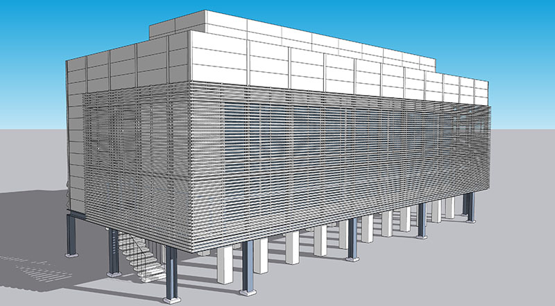 冷却塔设置隔音罩,顶部做出风消音器。隔音罩安装可将设备运行时产生的空气动力性噪声与外界环境进行隔离,增加声源区与受声影响区域之间的隔声性能,有效的控制噪声传播对周围环境造成的影响。